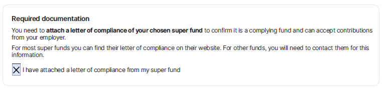 If you do not have a super fund, you can choose to tick this box. However, this means that you are consenting for your employer to open a new super account. It does not give you the choice of which super fund you’d like to be with.